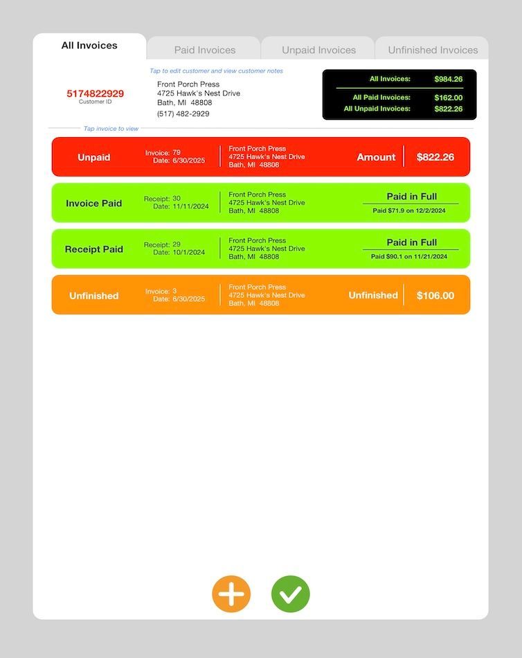 Qwik Invoices 2 is a powerful, user-friendly app built for small businesses and side hustles - offering the easiest way to create professional invoices and manage customer payments with no subscriptions or recurring fees. Intuitive buttons streamline invoice creation, making it a smart alternative to expensive software or complicated templates. Easily track paid, unpaid, and unfinished invoices, customize sales tax, and generate tax reports by quarter or year. You can even export customer data as a spreadsheet. With built-in instructions for every feature, Qwik Invoices 2 is accessible to business owners of all experience levels.