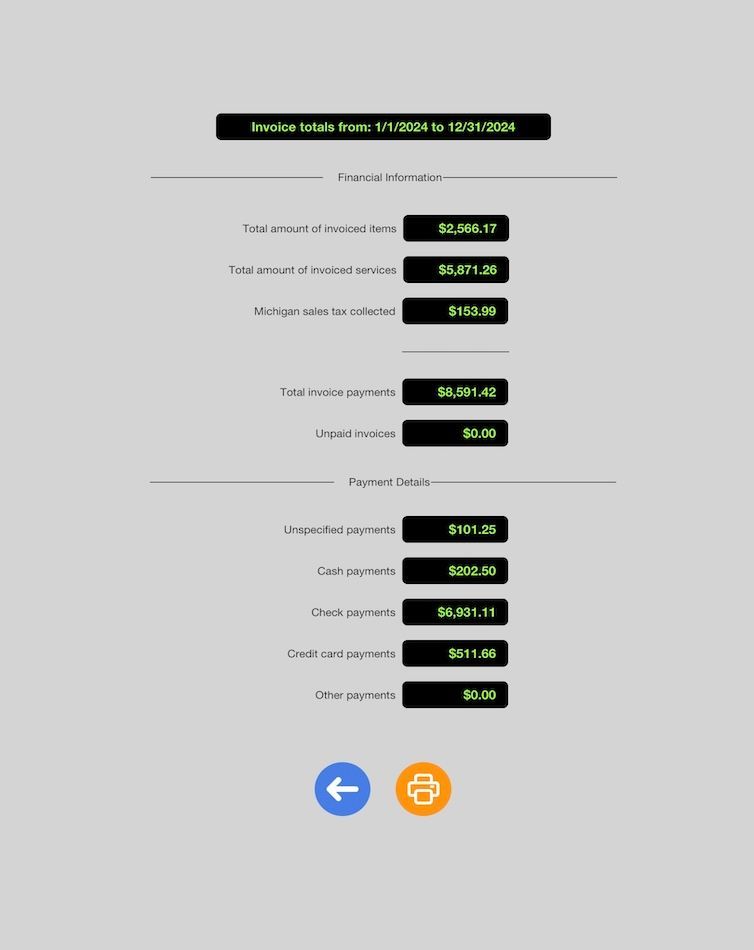 Qwik Invoices 2 allows you to instantly view your financials and tax information